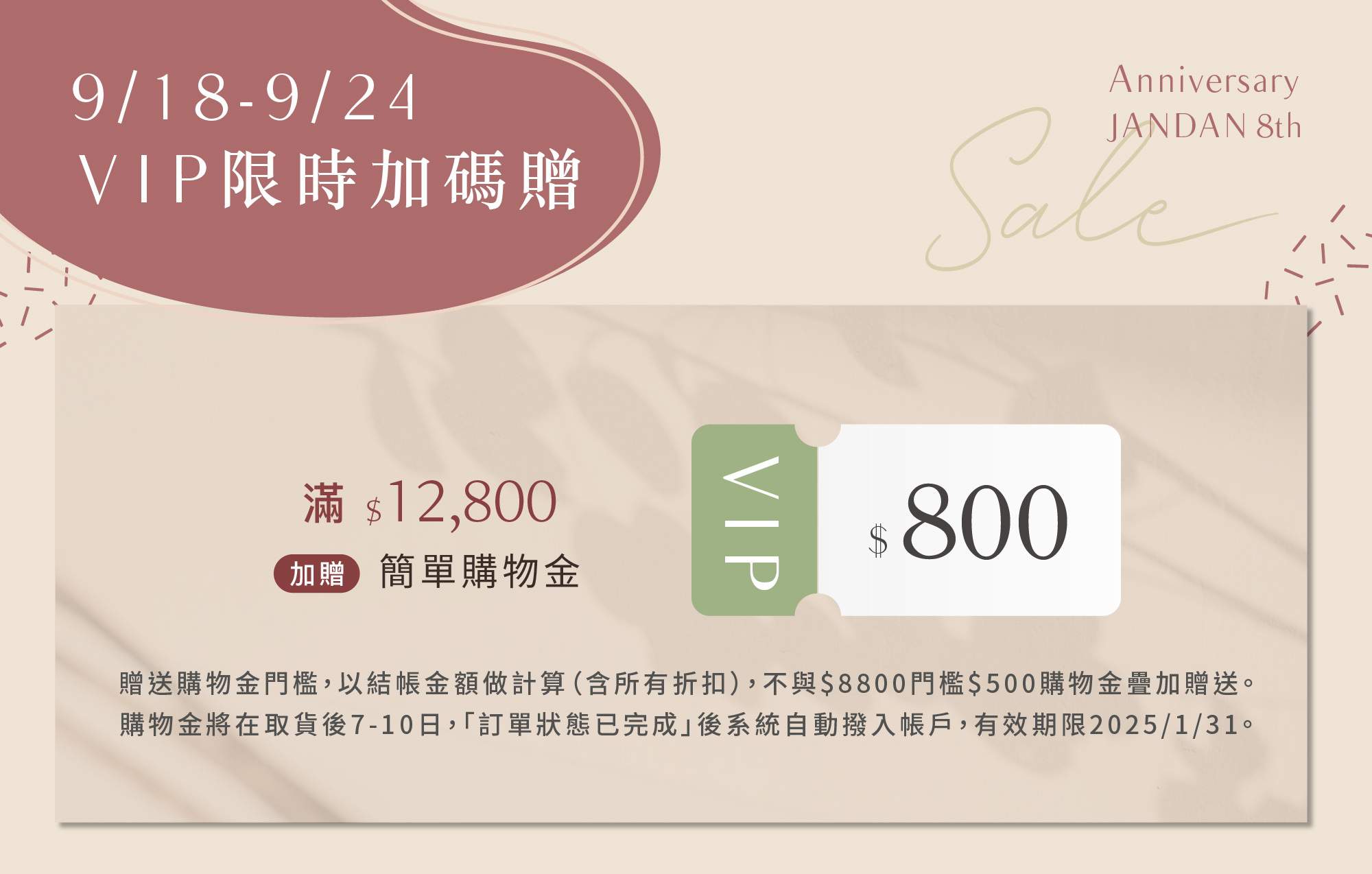 *贈送購物金門檻,以『結帳金額』(含VIP會員折扣)做計算,購物金將於取貨後7-10日,「訂單狀態已完成」後系統自動發放於會員帳號,效期至2025/1/31