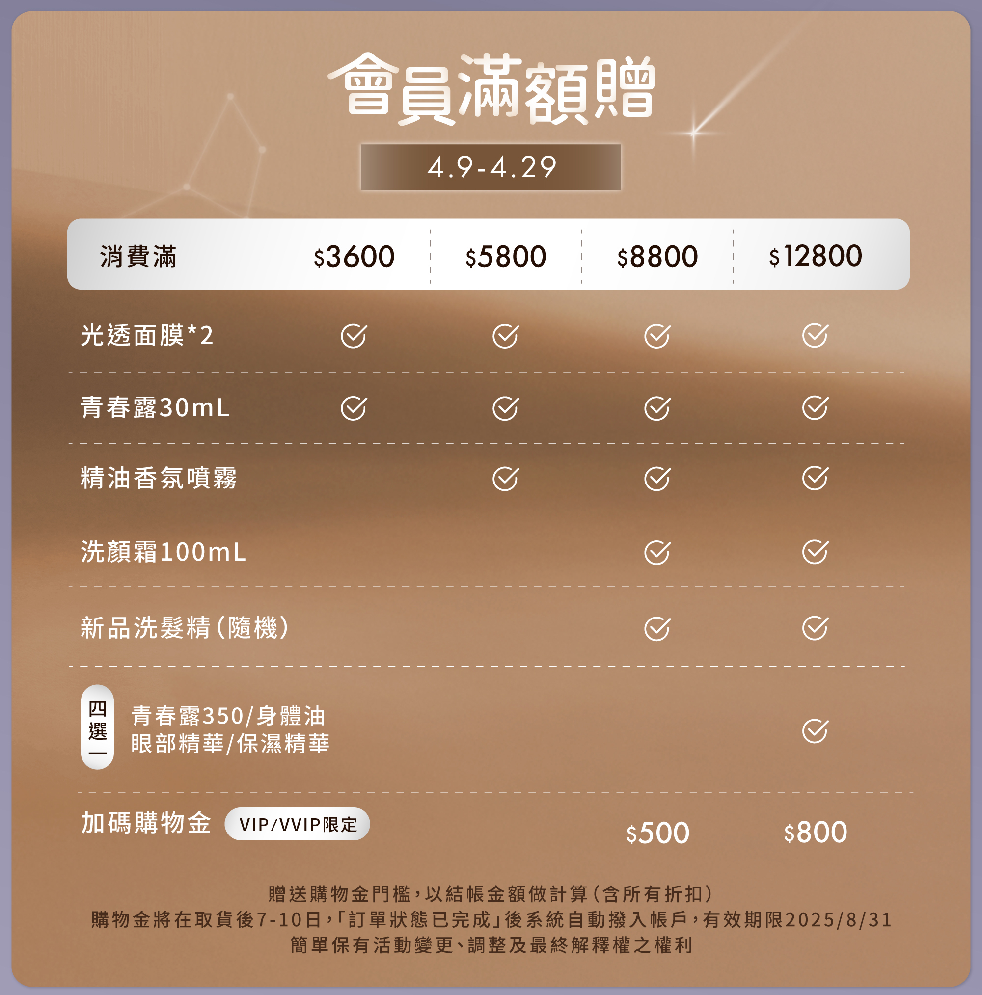 請參考下方圖片,消費到各階層將享有該階層所對應的贈品