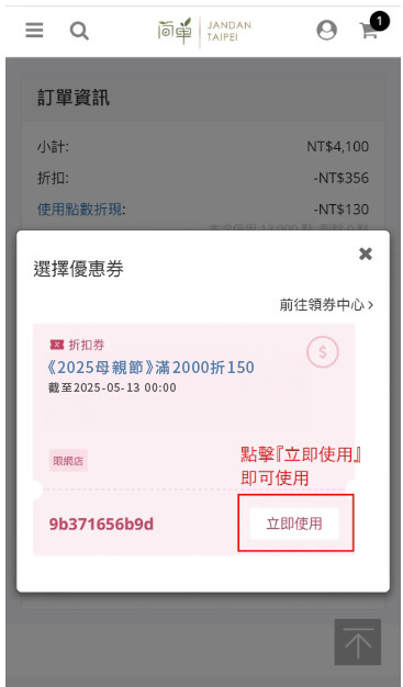 優惠券滿額即可使用,每人限用一次,不可與其他活動折扣碼並用。