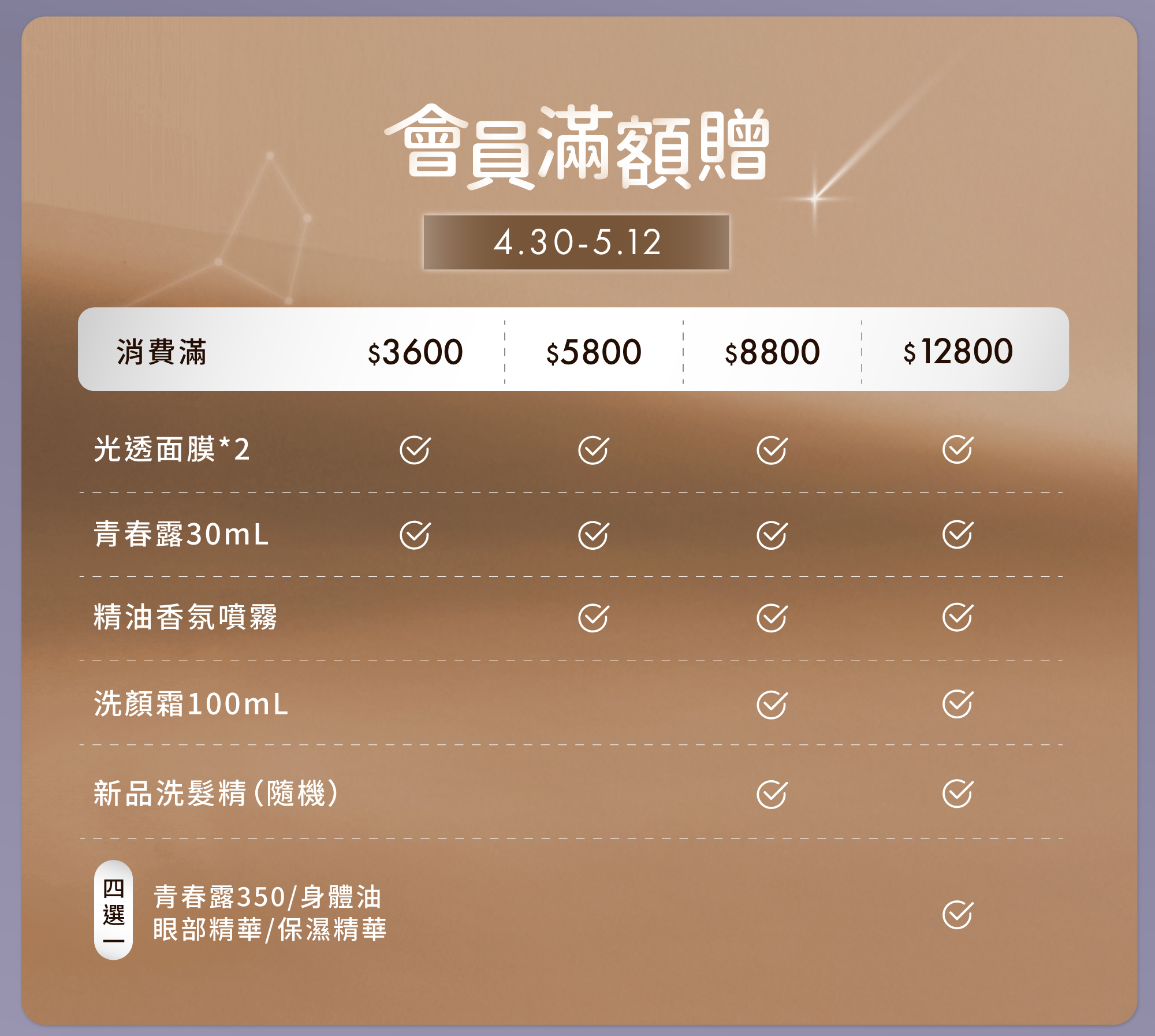 請參考下方圖片,消費到各階層將享有該階層所對應的贈品