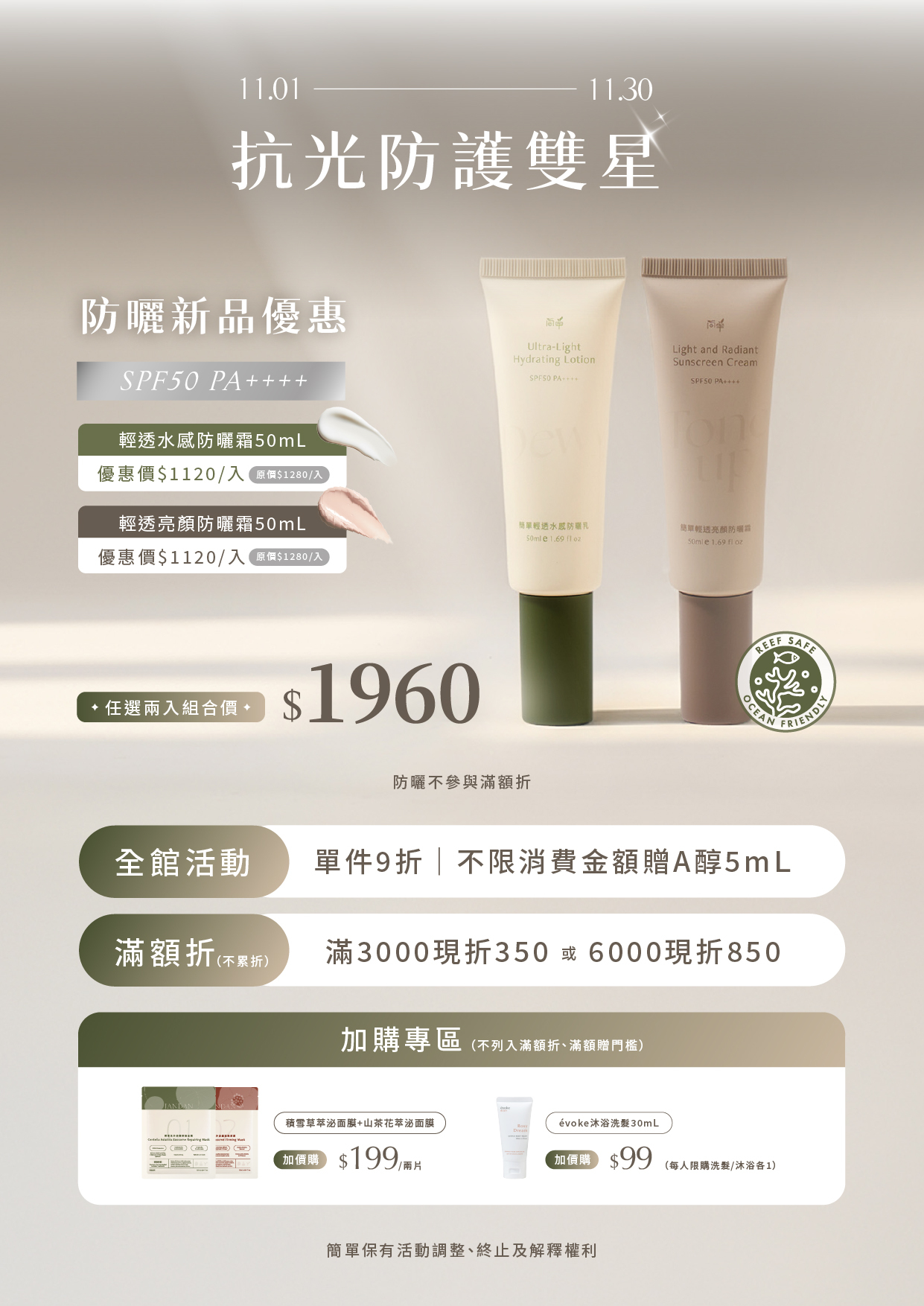 5. 簡單防曬新品、evoke、JD scent系列商品除外