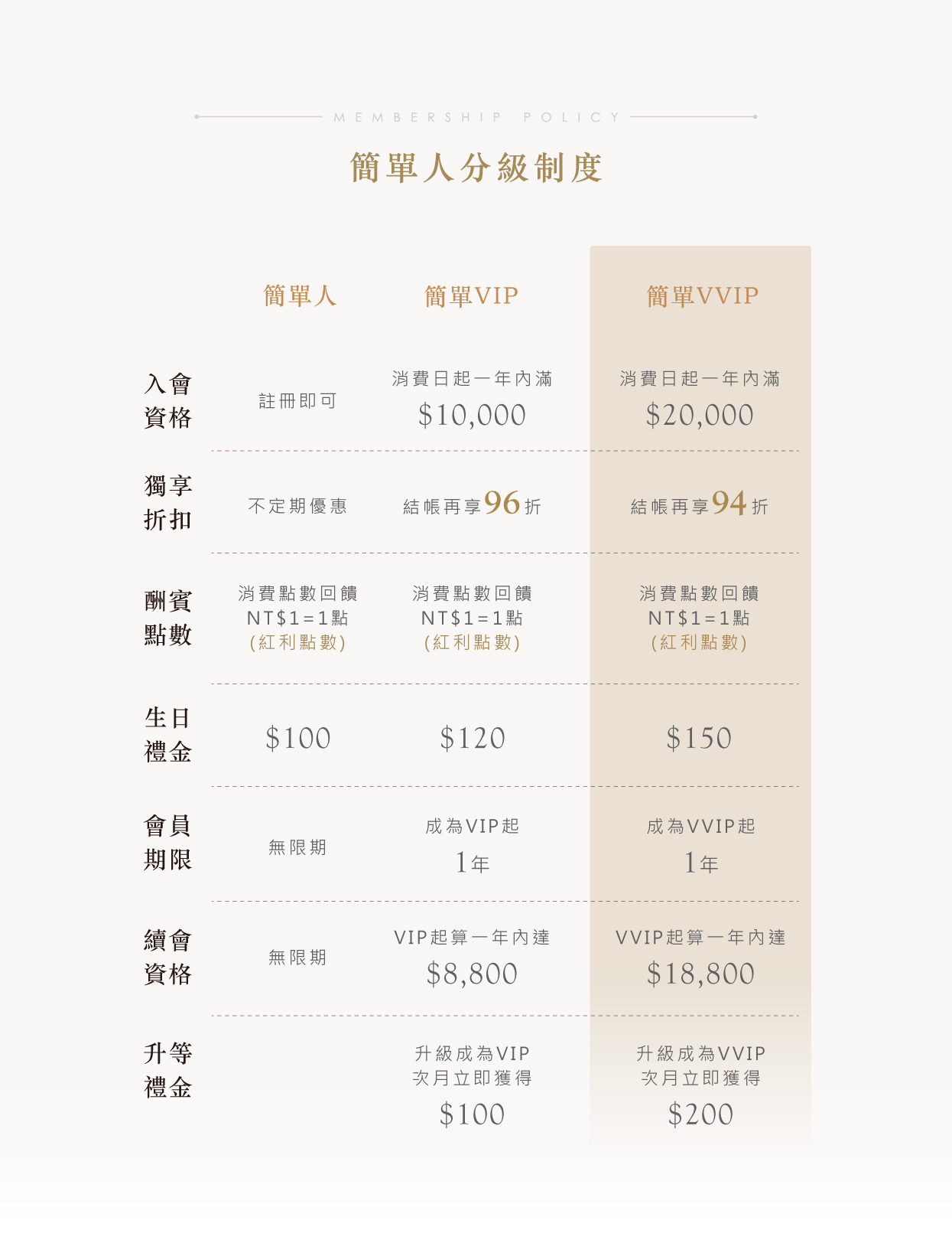 【升等禮金 (購物金) 】