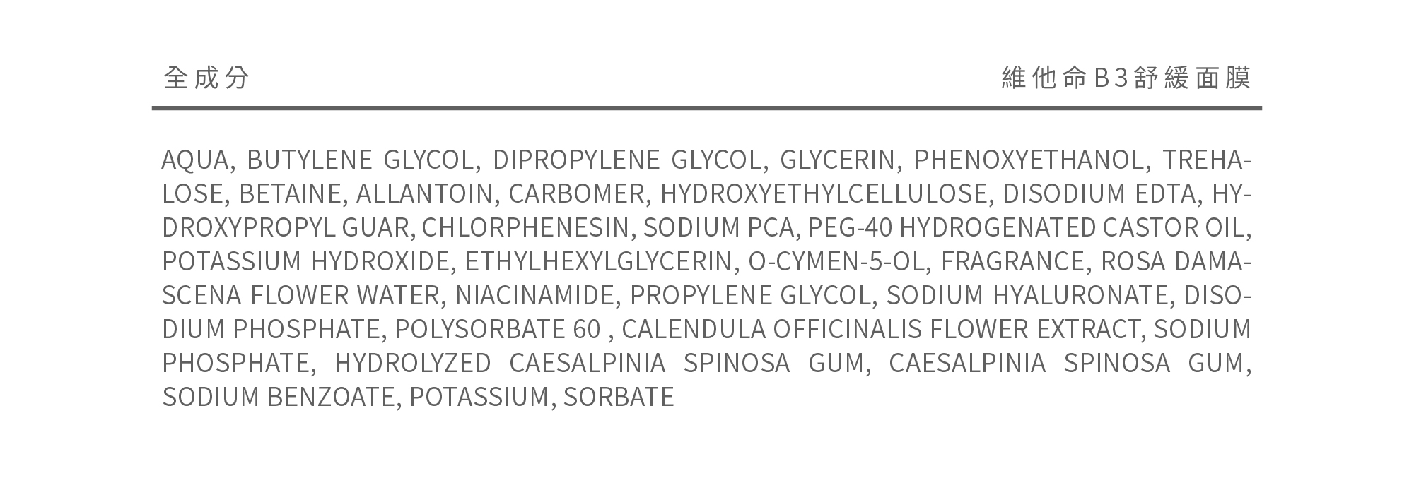 ◆ 維他命B3舒緩面膜:溫和調理角質,收斂毛孔、提升光澤