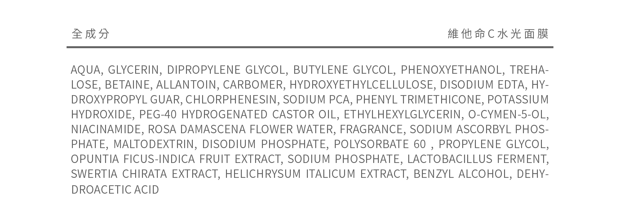 ◆ 維他命C水光面膜:改善蠟黃暗沈、膚色不均、角質堆積