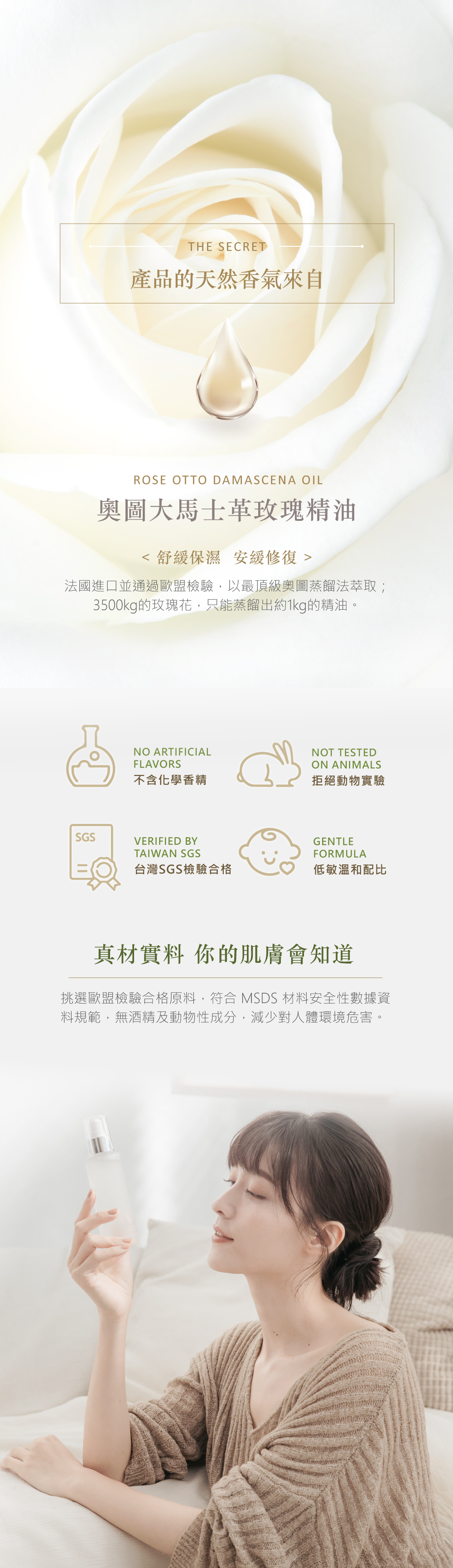 ◆ 玫瑰精油蒸餾,帶有天然療癒香氣
