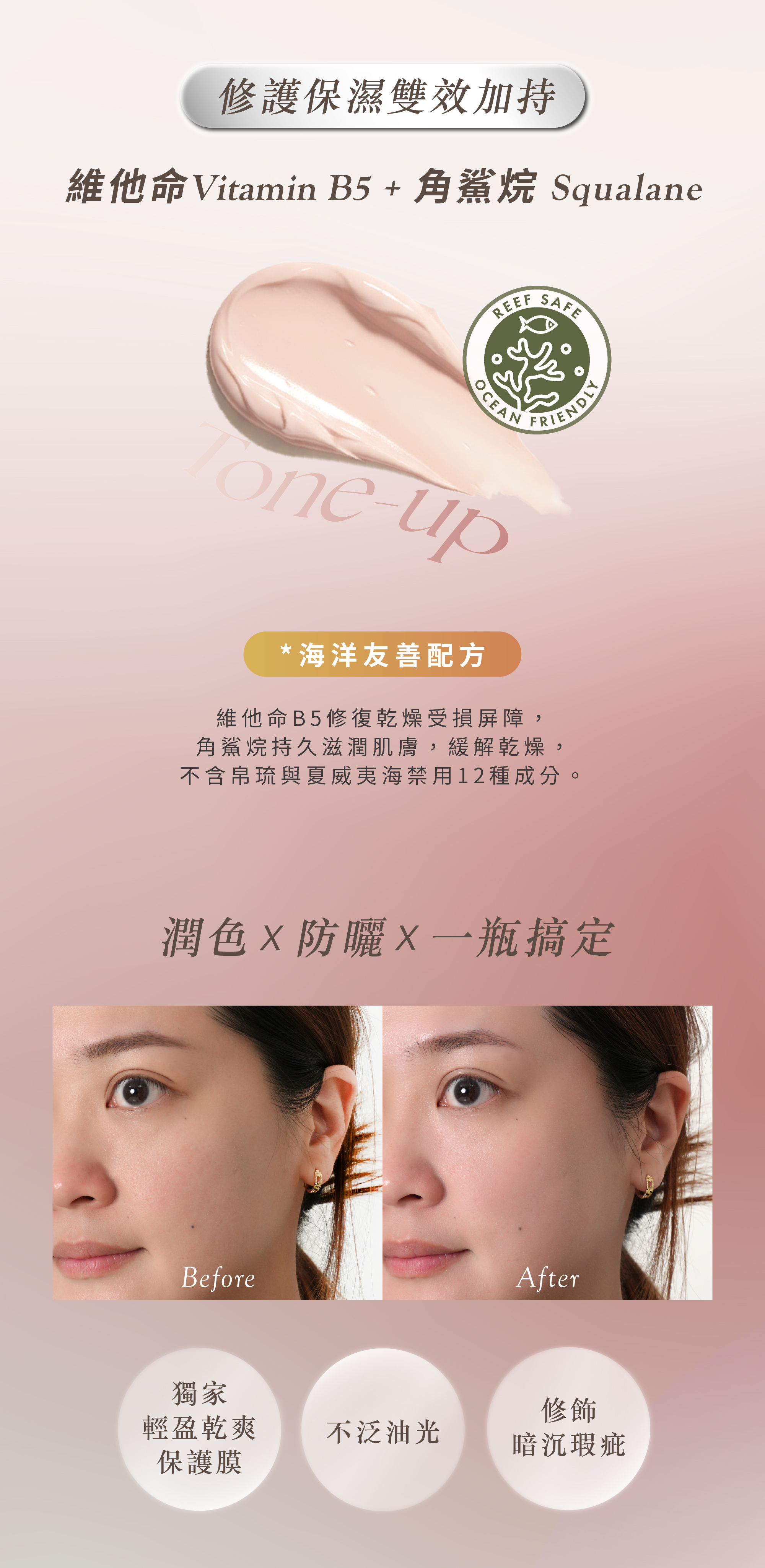 ◆ 毛孔隱形不泛白,海洋友善配方