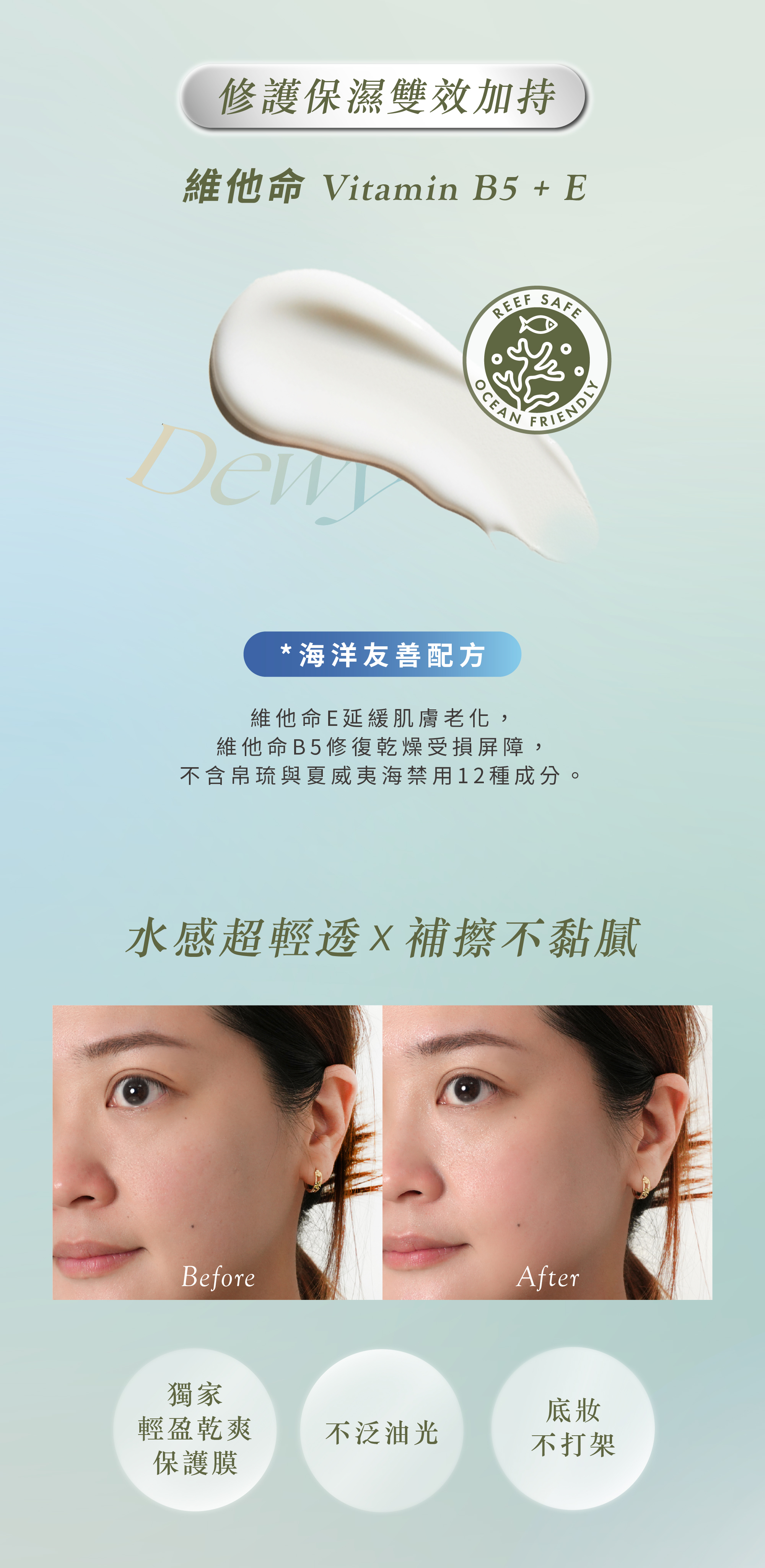 ◆ 清爽保濕,隱形不泛白