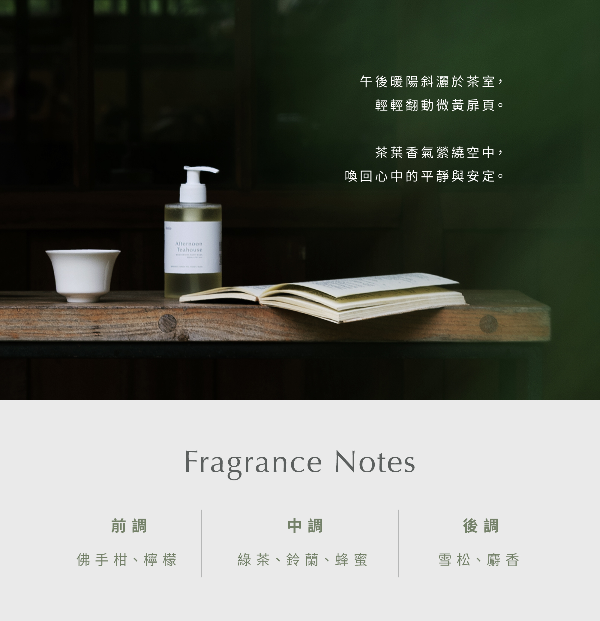 ◆ 午後茶室潤澤沐浴露:多重養護成分,滋潤調理細緻肌膚