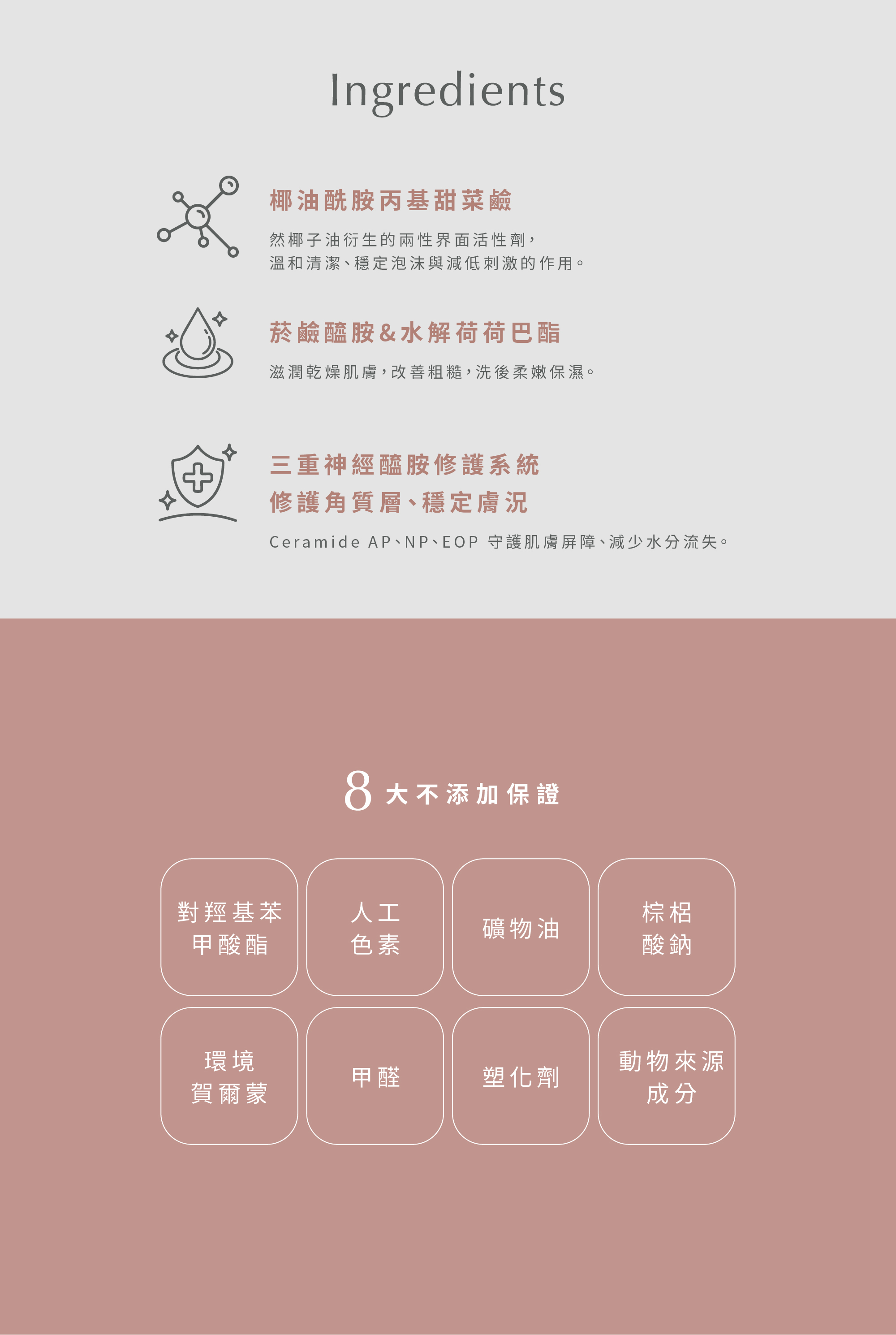 ◆ 玫瑰夢境舒緩沐浴露:3重神經醯胺修護屏障,保濕舒緩蘆薈成分添加;全膚質都可以安心使用