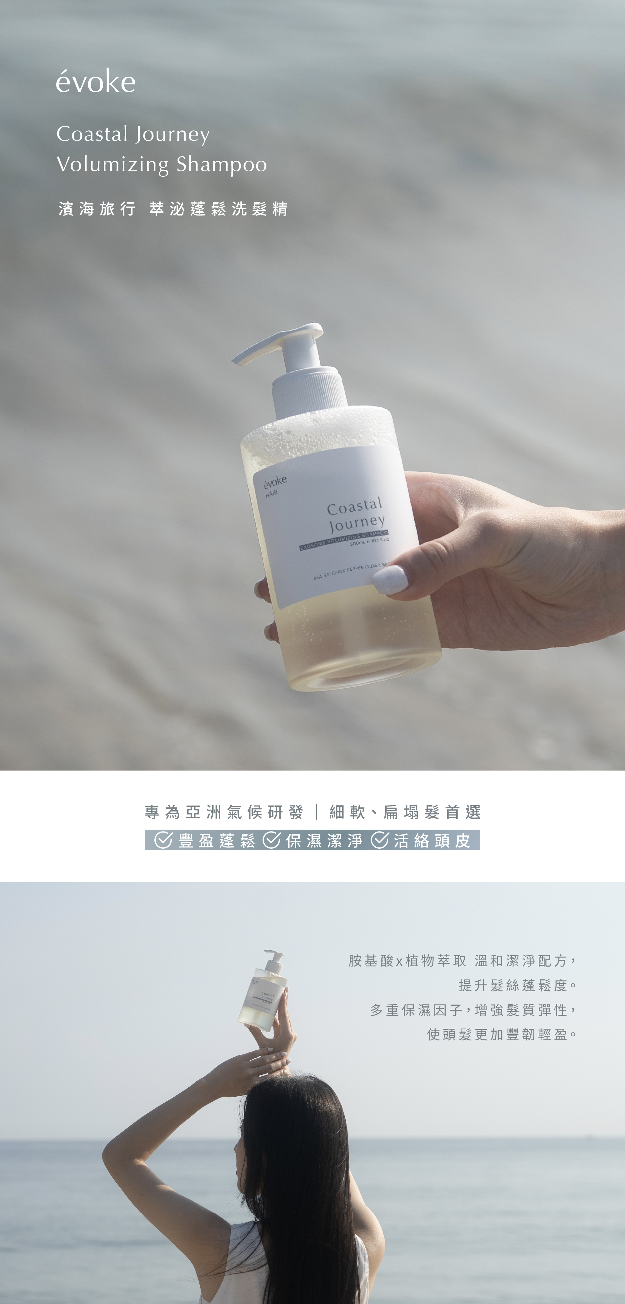 ◆ 濱海旅行外泌體蓬鬆洗髮精:細軟髮/扁塌髮質首選,強健髮根.豐盈蓬鬆